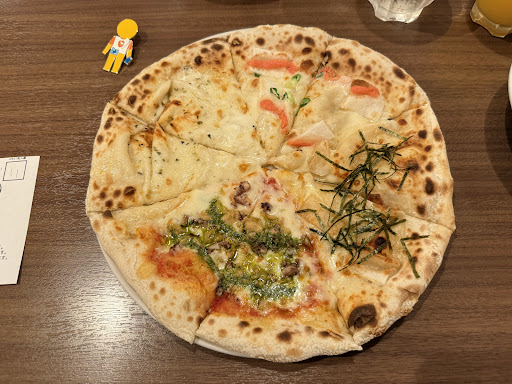 The kids enjoy that they can pick from almost 50 different types of pizza that is all you can eat. Adults cost ¥1590, children are ¥1190 and children under 4 are ¥500 but no main dish. The set you get soup, salad, 1 main dish (pasta,risotto, gratin, or carne dish) all you can eat pizza, soft drink and 1 dessert. Food seemed to be made to order and was tasty. The hot sauce bottle on the table was chunky and when we asked for a new one that bottle was the same. That was the only negative thing about the restaurant. Service was fast and friendly for how...