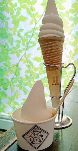 Casual dining and rich milk ice cream( soft served ice cream). First intended to visit Tokachi Alps ranch but gave up for the rain. But their milk ice cream is distributed here so...