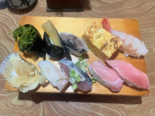 少しだけ駅から歩くけどアタリのお店。 うまい?まあ普通。なのにまた行きたい。 お店のいい意味で古ぼけた味と、店主の気さくな感じが大当たり。食通は来ない。 やや入りにく目の入口ですが、開けて、やってます?とでも聞けば案内されるでしょう。 押し売り感のないオススメがあり、アジのタタキを注文。半分シマアジ乗せましたとのことで、値札はなかったけど1,800円くらいかな?2人前だったのかも。 それか最後の冷たいお茶は300円くらいしたのかな?会計は謎です。 ビールは瓶ビール。 地魚と上寿司を注文。 ワンオペなので提供にズレあるが、それもまたよし。 地魚寿司は、めちゃめちゃ地魚感はなかったですが、タイミングもあるでしょう。 上寿司は握り小さめで注文。 夕飯はホテルの食事だからあんまりお腹いっぱいも困るし、十分。 お寿司は足りなきゃ追加注文しやすいのもいいですね。 お店はお父さんの代に近所の神社から取った名前だとか。 たまたま空いていて店主と話せたことで好感度アップなのでしょうね。 海情報、波情報など地元の方なら...