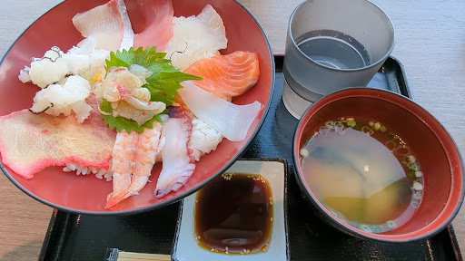 Read more飲食店とお土産屋さんがあるパーキングエリアです。お土産屋さんもお菓子だけでなく、ここでのヒット商品の生ふりかけや可愛らしい“ぬいぐるみ”が置かれてあったり、吉田松陰様の手拭いがあったりと見てて飽きません。飲食店は食券制で、海が目の前にあるので魚介類を食べた方が良いと思って海鮮丼を注文しました。写真では分からなかったのですが、珍しいクジラが入っていました。父(九州人)が生前好きな食べ物の1つでしたので、今回の旅は父の供養であり、注文してよかったと思いました。他のお魚も美味しくいただきましたが、私自身、甘いお醤油が不馴れでして、わさびで誤魔化しながら完食しました。九州醤油ですね。お好きな方、ごめんなさい。素晴らしい景色を見ながら優雅な昼食でした。🙏🥢 お店の入口に非常に可愛らしい物が売られておりましたので写真に撮りました。...