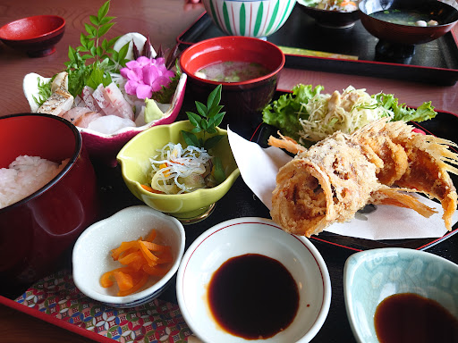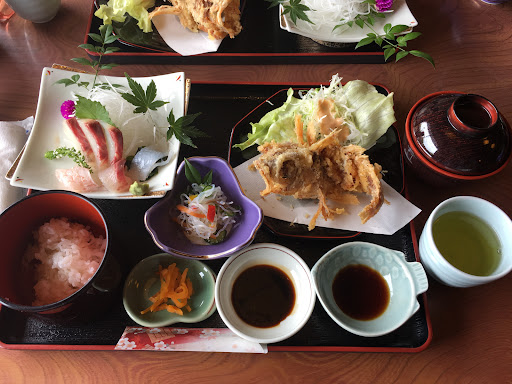 Read more国道からちょっと入った場所に、イイお店発見! 外見はちょっと高そうな料亭、って感じです! 店内に入ると、やっぱり高そうな雰囲気💧 外の景色が見れる座敷席へ! メニューを見て安心! maxでも2980円です。 「特牛イカ丼」と、 「刺身とオコゼの定食」をオーダーしました。 共に2000円以内でした! 特牛イカは肉厚でねっとり感と甘みがありバッチリ✌ 刺身も新鮮でしたよ。オコゼがパリパリで絶品です✨ 料理人のご主人は写真の腕前も、一流で、廊下に展示してましたよ。賞も取ってます! *追伸 ガラスで仕切られた地下階の 広い場所では、メダカの養殖をや...