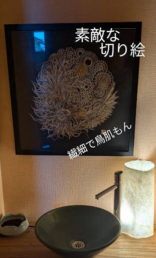 2組/1日とのことでしたが、2020年10月のコロナ禍現在、1組/1日とのこと。実にゆっくり過ごすことができました。 ・スラムダンクファンの店主が作成した切り絵が飾られており実に楽しい。鉢に炭が焚かれており最高の雰囲気。 ・お風呂は男湯と女湯があるのですが、片方を貸し切り。このお風呂の湯質が素晴らしい。お肌がツルッツルです。 ・お部屋は二つあったものをリノベーションで一つにしたらしく、広々としております。 ・ご飯も美味しく、朝食に食べた山口特有の「なます」が印象に残李ます。昔よく食べたなあ。 ・「スラムダンクの名シーンがあるが、切り絵で表現できないので、水墨画を学び、日本画の画材を使って再現しました」と80cmX80cmくらいの作品を見せていただきました。特に桜木花道のフクロハギに力を入れたとのこと。ファンの鏡ですな。素晴らしい。実にカッコよく、額に入って飾ってあるところを見たい。