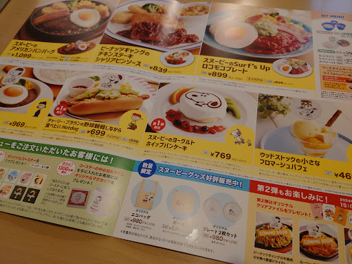 ジョイフルさんとピーナッツのコラボですが、わかりやすく言うと『スヌーピーコラボ』ですね。こういうコラボ商品は商品(食べ物)のほうも『しっかりと企画されてくる』ので、見た目の楽しみもありますが、味の方も毎回美味しいです。今回のメニューは、ドリンクバーとスープバーがついて税抜999円というお得さ。ミニサラダにポテトがあり、贅沢なサンドイッチは食べ応えありでありながら、ソースもかなり美味しい。オススメです。