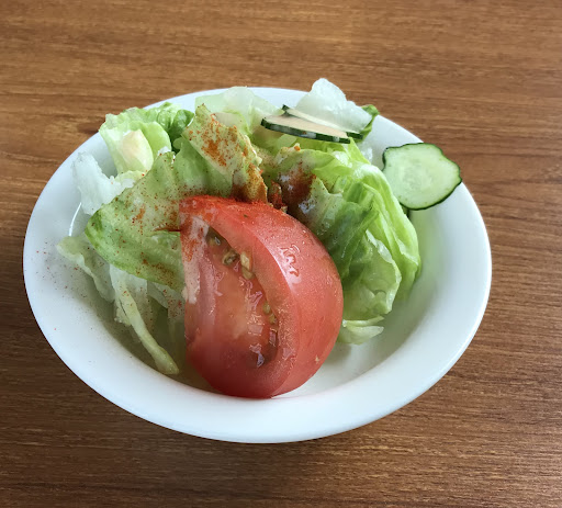サラダは少しの量ながら良い野菜を使っているのがわかる出来映え テーブルに置いてあるサラダスパイスも風味が増して食欲を増進させてくれます