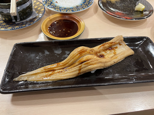 It is a conveyor belt sushi restaurant. The price is quite good, but it may be a little more expensive than Sushiro. It is located on the second floor of Kamon Wharf. You can order food from a tablet. There are many menus to choose from. There are English and Thai menus. Anyone can come and eat. It is not difficult to order. The staff is good. You don't have to wait long. There is free green tea. The special menu for this period is whale. And the must-eat is grilled eel. It is the most delicious in Kyushu. There are many menus to choose from. There is also Otoro Yukke. This is the first menu I have eaten here.