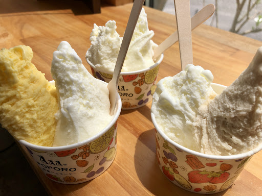 a gelato shop near Tsunoshima-oohashi (่งๅณถๅคงๆฉ) here got some unique flavor of gelato, like Japanese sake, soy sauce, and yuzu-pepper. I think this is a good place to go after visiting Tsunoshima-oohashi, but you have to drive yourself there. By the way, the seats here...