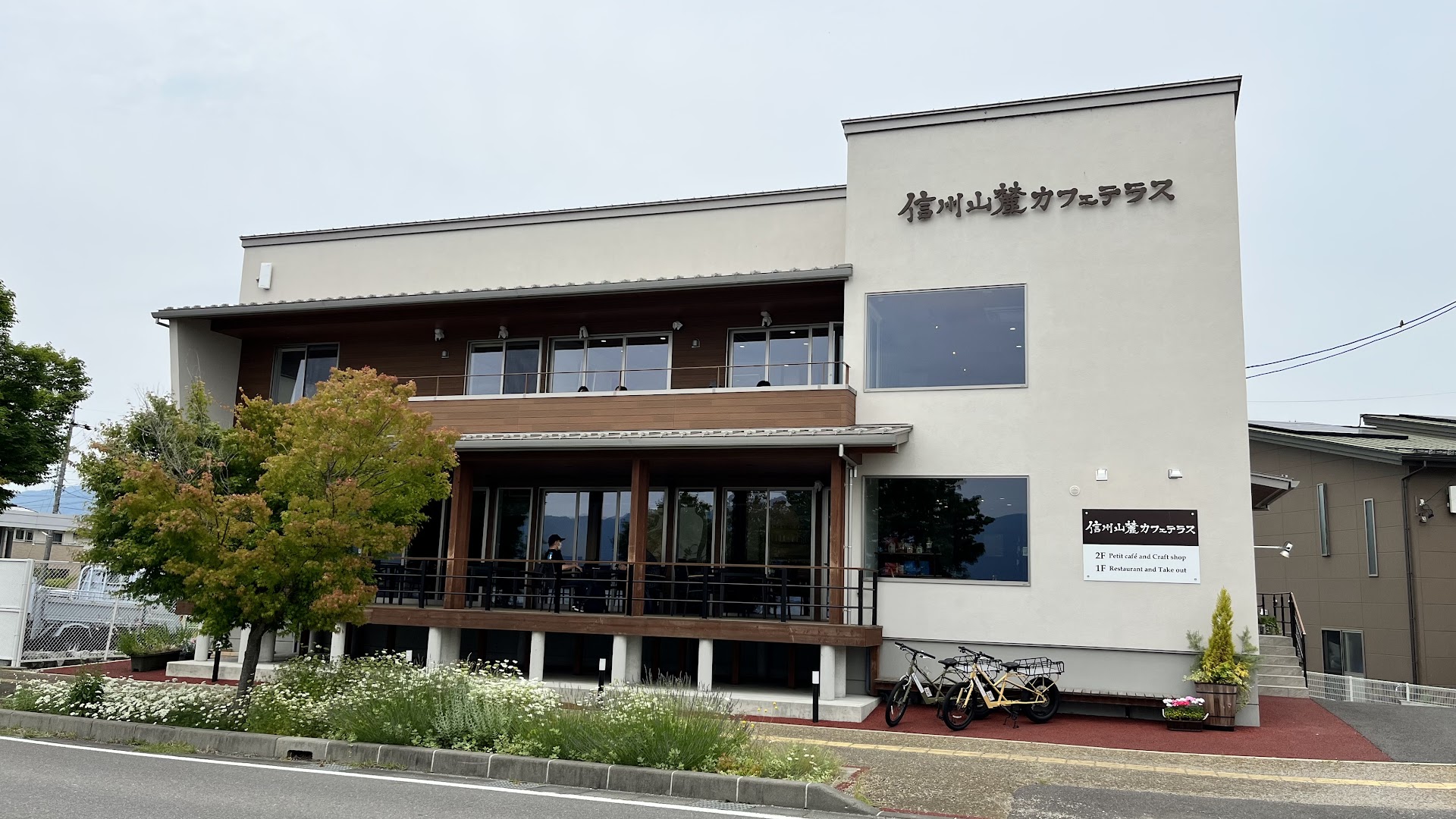 とてもお洒落で素敵なロケーションで、諏訪湖がまるで海のように見えます。初めは2階のカフェを利用しましたが、テラス席が最高でした。一緒に行った友人も「ありえない景色」と絶賛でした。その日は富士山がくっきり見えました。眺めの良いところって、メニューがありきたりだったりがっかりすることが多いけど、ここは多分手作り中心で、かつセンスも良く頼んだケーキや紅茶を美味しく頂きました。ムレスナティーというフレーバーティーは初めて知りましたが、とても気に入りました。メニューも飲み物も素敵です。