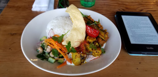 Breakfast and Lunch are limited to two or three options each. For lunch I had keema curry (pictured). Was a reasonable portion and was very tasty! The sides were especially good as well, with a nice freshness due to the use of fresh cilantro and a light pickling. The curry was well seasoned and tasty as well. After, I had coffee and a blueberry scone which was really a highlight. Forget those hard bricks that you get at Starbucks or the convenience store, this was light, soft, slightly sweet, and really just excellent. If all the pastry is like this I would come here any time for a snack and coffee. Coffee was also freshly ground and quite good as well.