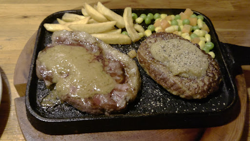 残ったご飯をステーキとハンバーグで一緒に食べたかったので、ああ、これだったらご飯の量を大盛りにしておけば良かったと、後悔。