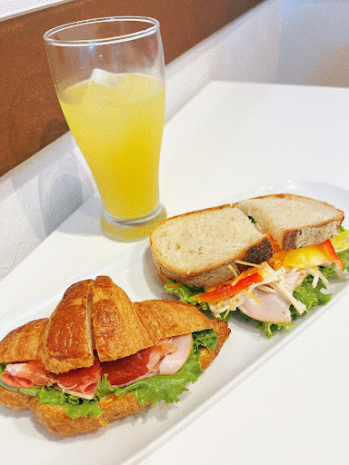 今回は『3種ハムのクロワッサンサンド』『たっぷり野菜のシーザーサラダ』とお土産用に『ランチボックス』1080円を購入しました。 サンドはイートインスペースで頂きましたが、食べ易いようにカットしてお皿に盛り付けてくれます。ちょっとした心遣いが嬉しいです。