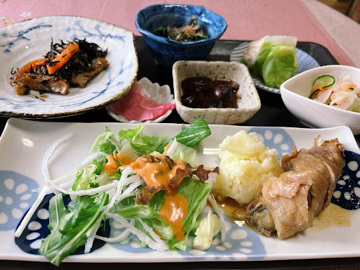 Read more12時過ぎに訪問しましたが、ほぼ満席でした。 店内はカウンター席とテーブル席があります。駐車場はお店の隣です。 着座すると直ぐにコーヒーか紅茶を聞かれ、コーヒーを注文。メニュー表を待っていると、まだ注文していないのに料理が運ばれてきました。そしてお料理は何の説明もなく、テーブルに置かれていきました。 周りを見渡すと、皆さん同じ物を食べていました。ランチメニューは一種類なのでしょうか??お店のシステムがわかりません。せめてお料理の内容だけは教えて欲しいと思いウェイトレスさんに尋ねると、一言『肉巻き』ですと。見れば分かります。愛想のなさにも驚き、訪問したことを後悔しました。来店客は皆常連さんなのでしょう。 カウンターの中で調理されているオーナーらしき方は、感じのいい方でした。