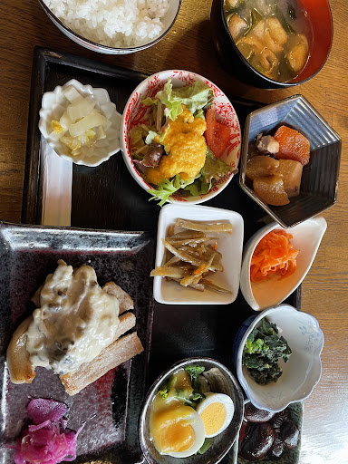 Read more土曜日のランチにお邪魔しました。 石橋を通過した時に目に入り早速検索。 とても気になったので入店。 駐車場はお店横に4.5台は置けそうでした! 店内は先客1組。 席に案内されるとランチですか?と尋ねられ、はいと言うと、飲み物のコーヒーか紅茶を聞かれました。 メニューはないのかとキョロキョロしましたがなさそう。その間に検索。 口コミで発見!どうやらメニューは日替わりランチのみらしい!!ちょっとびっくりしましたが、10分ほど待つとお食事提供されました。 好き嫌いは別として、全て手作りの品数豊富なお膳。 どれもあったかい味がしました。こんなに大変だろうに‥と思うほど。 食後にコーヒーとケーキ?が付いていてお値段1300円でした! 支払いまで金額もわからずいたので少しドキドキでしたが妥当な料金かなと。 もう少し説明があればもっと評価は良かったかなと思い...