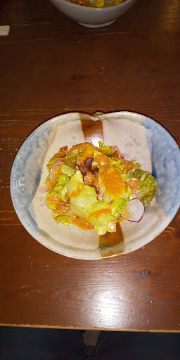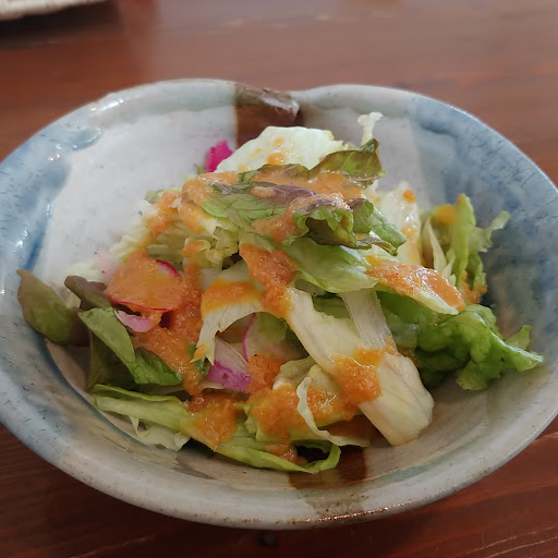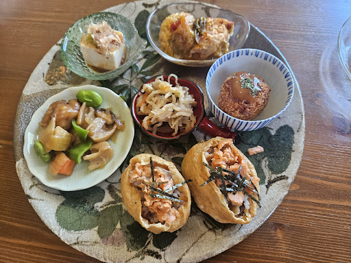 Read moreランチで訪問。 店内はとても落ち着きのある空間。 「母ちゃんのおいなりさんプレート」を注文。 ドリンクとデザート付き。 店員さんが気配り良くお冷を良く継ぎに来てくれる。 最初にサラダが運ばれて来ます。ドレッシングも程よい掛け具合。私はドレッシングが皿の底に溜まり、野菜がヒタヒタになるのが嫌いなのでちょうど良い。 おいなりさんプレート、色んな野菜が彩り鮮やかに盛られたワンプレートです。 家庭的な味付け。 おいなりには牛のしぐれ煮が載ってます。 けっこう大きなおいなりさん! おいなりは数種類から選べ、私は五目いなりで。 おいなりは薄味だけど牛しぐれ煮と合わさる事で良い塩梅になります。 ドリンクで頼んだコーヒー、ブレンド…多分、3種類の豆かな? 私、コーヒーは自分で挽いて飲むので結構コーヒーには煩い口w だけど、プレスでちゃんと入れられたコーヒーは、深み薄いがコクがあり満足なコーヒー。 デザートのシフォンケーキもコーヒーに良く合ってる。...