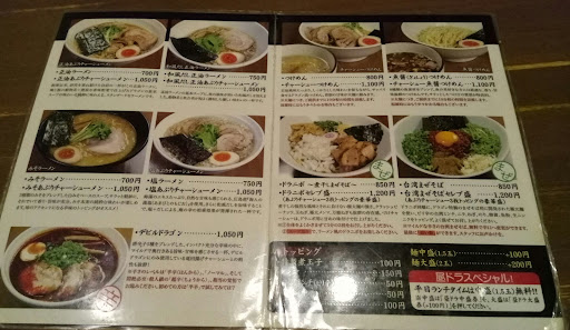 Read more1年ぶりに再訪(^^) 暑かったので、つけ麺に♩ 醤油ベースの背脂のスープ! 多少の酸味があるので さっぱりしてますよ(^^) 食欲がないけど・・・の 方にはオススメです♪ 再再訪:1ヶ月ぶりに再訪♪ 本当はデビルドラゴン目当てに 行ったのですが、「台湾まぜそば」が 目に入り、ポチッと(^^) にんにく有無と「辛口」が選べ 休みだったのでにんにく有りに辛口を選択♪ 麺は太め平打ち麺でモチモチ感が感じられ シャキシャキなニラとネギに旨辛(デビル ドラゴン中辛より弱め)なそぼろは ご飯が欲しくなりました♪ これもおいしかった(^^) 再訪:今回は胃の調子が悪かったので 「醤油ラーメン」を注文(^^)! ぶりっとした細めの麺に優しいスープ♪ おかげさまで元気になりました! デビルドラゴンはまた食べたくなる ラーメンでした(^^)