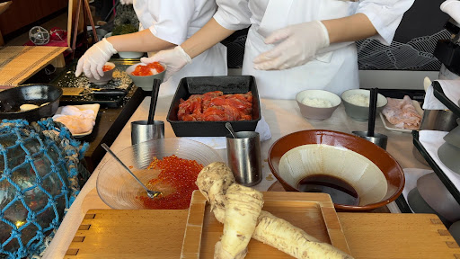 While at nininupuri, there are raw salmon, ikura etc which u can eat with rice.