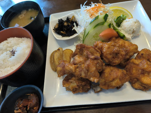 Read moreランチタイム 席は半分程空いていました。はじめに大人のランチ、5分弱後にからあげ定食が届き大体30分程でした。全体的にボリュームがありました。ハンバーグの裏側がわりと焦げていた。海老フライは素材の味が薄く感じた。 鶏のからあげ定食に付いていた赤いキュウリの漬物が古い違う味がしたので連れにも確認して変だよねという事でメインでは無いからどうしようかと少し考えましたがお店の男性にその旨を伝えると「新しいハズですけどねえぇ。。」とヘラヘラしながら言われただけでした。箸休め的存在対応はその程度なのかもしれませんが口に運んだ側としてはそれにより料理の味はとんでしまい印象には良くは残...