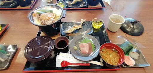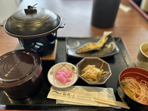 Read more陶板焼きをいただきました。 味噌だれの野菜の上に乗った牛肉です。 シンプルですが、塩気がキツイのを除くと美味しかったです。 鮎の姿焼きも、地元ならではですね。 紙でもいいので、説明があると嬉しかったかも。 川を眺めながら...