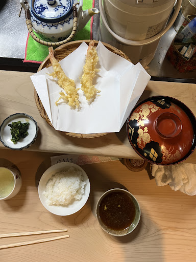 Our best meal in Japan so far. We were the only two people when we arrived a Saturday night at 6:00 pm after days of hiking. The tempura sauce was amazing and the fresh veggies too. Everything is so clean and the couple preparing very warm, though only speaking Japanese. We used Google translate to understand the menu and communicate our wishes. We also got a very taste soft boiled egg as a starter, the best miso soup and a local orange for dessert. Would 10/10 recommend for a truly local and...