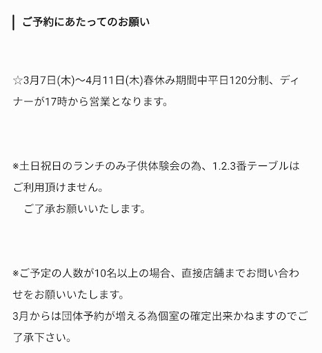 また、誠に勝手ながら7月27日(月)~8月31日(月)の期間は、平日のご利用時間を120分制 とさせていただきます。 ……………………………………………………………………… 【通常営業時間】 ランチ (平日・土日祝) 11:00~16:00(最終入店15:00) ディナー(平日・土日祝) 17:00~22:00(最終入店21:00)