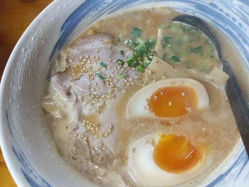 味噌、塩、醤油が800円とリーズナブルながら食べてみるとめちゃめちゃ美味しいお店でした。味噌ラーメンは近くの大人気店とかなり似ている系統で、味噌の本格的なコクの美味しさがハンパないです。向こうは最初は少し甘めでそれほど美味しくないのですが、底の方に挽き肉がかなり沈んでいて、そのゾーンに入るととんでもなく美味しいのですが、こちらは最初から味噌の甘さに加え塩味とコショウのスパイシーさがピリッと効いていて最初から最後まで飲みほすほどスープが美味しいです。ただ、挽き肉は入っていないので、最後の楽しさは向こうに軍配です。麺はどちらも黄色い中太縮れ麺で固く、こちらは一層固いので、柔らかめのオーダー推奨です。チャーシューはこちらの方が大きくて柔らかいです。シナチクも柔らかく塩味が効いています。あとはネギとモヤシとタマネギが少量。ただ、これだけスープが美味しいと、チャーシュー麺にしたり味玉をトッピングしたりしてみたいです。どれもきっと美味しい! 店はカウンター5席、2人がけテーブル1つ、小上がりにテーブル4つ。ブラインドがかかってますが海が目の前に見られて景色が良いです。 接客が悪いというクチコミがありましたが、全然そんなことはなく女性の方も店主も丁寧で感じがよい方でした。テーブルのお水が無くなっていないか気にかけたり、ラーメンの置き方が静かで丁寧など細かい所まで気を使っている印象でした。 定休日は結構変わっているようで情報が錯綜していますが、令和6年3月現在では毎週水曜日、祝日と重なると木曜日になるようです。 テレビで紹介され大人気の向こうのお店はお客さんでごった返していて待ち時間が長いですが、こちらはチラホラしかいないので5分でラーメンが出てきます。味は全然負けておらず大変美味しいので、しばらく...