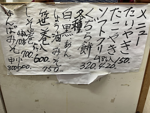 Read moreこれこれこの味だ! 昔ながらのたい焼き屋さんはすっかり減ってしまいました。また、米粉入りたい焼きは小麦の香ばしさが乏しくて好きではありません。貴重な店をぜひ頑張って続けていただきたいですね。 著名人の色紙がたくさんです。 ・たい焼き160円5月頭まで販売 ※焼きたてでの提供なので電話注文おすすめ ・たこ焼き440円 ・ソフトクリームや蕎麦、なんば味噌も売ってます。 5月からはかき氷が...