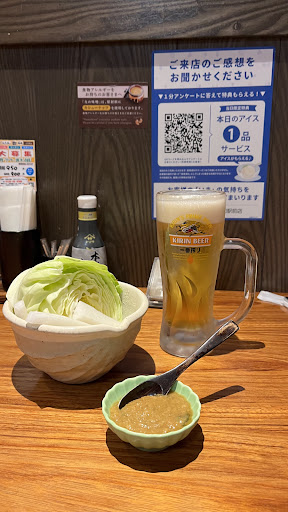 最初のお通しのキャベツなどの生野菜はインパクトもありパリパリして味噌つけタレも美味しかったです