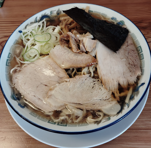 さてさて、ラーメンです まずは見た目から。 チャーシュー増し?と思わせるような、チャーシューの量でした チャーシュー増しにしたらどうなるのでしょう。 麺は、酒田、山形に比べると細めに感じます 量は、同じ2店に比べでもひけをとりません 特盛がありますので、特盛はかなり多いかと。