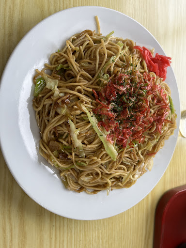 Read more一般的なものとは異なるユニークな焼きそばを頂けます。 麺は新庄のラーメンでよく見かける細ストレート麺で、硬めに仕上がっており博多の焼きラーメンを思い浮かべます。 具材は千切りキャベツのみ、仕上げに干し海老をトッピングし味のアクセントになっています。(紅生姜も添えられます) 味付けは甘めのソースですが、ソースを感じさせない「うま味」で、見た目も淡く上海焼きそばをイメージさせます。