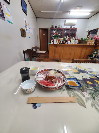 Read more2025/5/28(水)バイクランで新五島町に来て🏍️〰️🚢ランチに寄りました☀️🍴🏍️ 事前予約とお料理(お刺身の盛合せ)をお願いしていました☎️😉 早速準備して頂き🐟🐙🔪美味しそうな「お刺身の盛合せ」が登場🐟🐙😲🎶 ご飯とお味噌汁を追加注文してランチのスタートです☀️🍴😆 「お刺身」は『反時計回り』で キビナゴ『右側の光っているお刺身』 カサゴ(現地ではアラカブ) ミズイカ アジ『釣りで捕ったもの』 タコ コシナガマグロ『定置網に入って来る』 ルリヒラス『ご当地ブランド魚』 食べる前に説明をして頂きました🐟🐙📝😲 いずれも美味しかったですよ⤴️😆🎶 特にお気に入りは酢味噌で頂く「キビナゴ」🎊🐟 ご飯もお味噌汁も美味しかった...