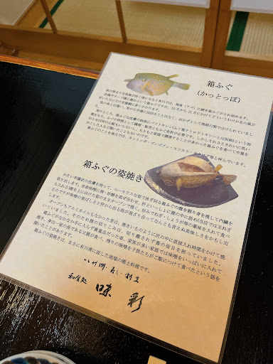 Read more五島、地元の郷土料理をいただけるおみせ。魚が美味しいのでお寿司お寿司と楽しみにして入ったら、人手不足でお寿司はやめてしまったそう...。カウンター越しに見える立派な寿司桶が沢山見えさぞ美味しかったのだろうと残念でした。が、かっとっぽ(ハコフグの味噌焼)初め、刺身、天麩羅、全ての料理が大変美味しくお酒との相性もとてもよかったです。他にも捕鯨で有名な土地柄なのでクジラのお刺身が種類豊富にあります。珍しい部位もあり好みに応じて色々選べるのでぜひ試して頂きたい。女将さんもとても物腰柔らかく丁寧な接客をされていて...
