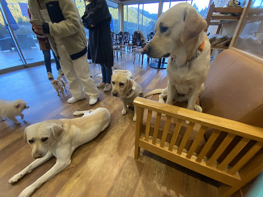 お店のラブラドール達はセラピー犬としての訓練をされていますので、小型犬の利用も問題なく受け入れされています。