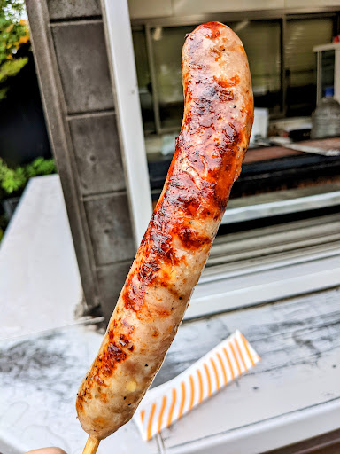 2022年11月12日、ラリージャパン観戦で訪問。 ちょうどここからリエゾン通過を見ることができる時間帯は満車で入れませんでした。その後にもう一度来たところ、入れたのでラッキー♪ 以前にも来たことがあるような気がしていて、その時の思い出の、ものすごく煙が出ているフランク屋さんが美味しかったのがここだったのではないかと思っていたのを確かめることができました。ここでした。 多少、列はありましたが、10人くらいであまり待たないような気がしたので並ぶことにしました。今回もおいしかった!牛タン串も頼んで、こちらもおいしかったです。 写真を探ったところ、以前来たのは2016年でした。古い写真もあげておきます。フランクの他に鶏ももまるごとのようなものが写っていますが、これはなんだろう...