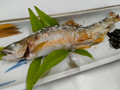 鮎の塩焼きはふっくら焼けていてとても美味😋皮まで美味しくいただきました♪