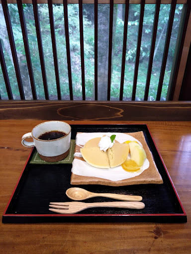 Read moreちょっと甘い物でもと思って調べてこちらのお店に行きました。 先に注文&お支払い制です。 アイスコーヒーとプリンのセットを注文しました。 そこから席に入ってビックリ。 囲炉裏や火鉢などが有り、古民家風だなと思っていてお店のご夫婦にお聞きしたら50年ほど前に白川郷から当時築150年だった合掌造りを移築したそうです。 その後世界遺産に登録された為今は当然そのような事は出来ず、中の改装も出来ないそうなのですが、こちらは合掌造りの良さを残しつつ改装されており、しばらく空き家だった物を綺麗にしてカフェとして2023年4月から営業を始めたそうです。 そのため雰囲気も良く、鳳来寺山の麓という事で自然に囲まれてより良い物になっています。 ご夫婦の愛想も良く、非常に楽しめました。