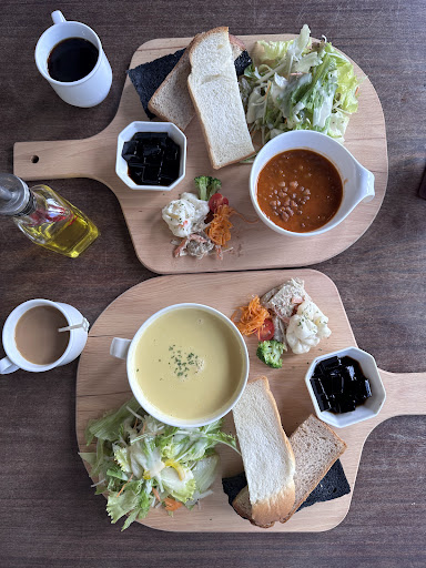 Read more8/22㈭ モーニングの時間内に間に合うように出掛けました😁 コーヒーは2杯まで🆗 パンのあかわりも🆗 2回目以降は どんなパンがいただけるかは 分かりません…お楽しみです🤤 時間制限は無いようで 、平日だし ゆっくり出来ました。 お土産にシェアするため、購入した食パンを 6枚切りにして 2種類を1袋に入れてもらいました😅ありがとうございました。 店員さんの笑顔と 仕事ぶりは見習わなきゃ😊