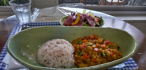 食事のメニュー数は多くありませんが、どれも美味しく、特にドライカレーがお勧めです。セットのサラダは量がたっぷり!