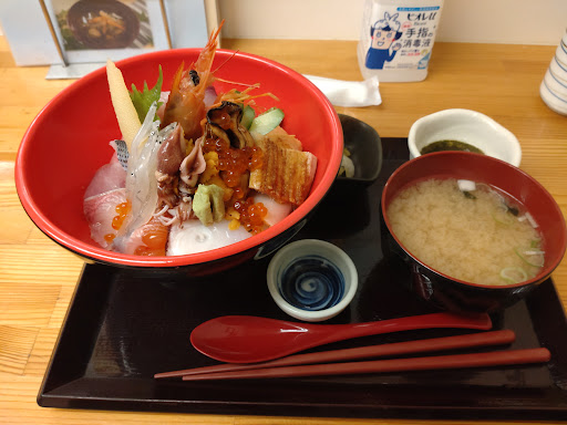 塩竈の水産物仲卸市場の中で営業されている海鮮を提供されている食事処で席は10席程度のカウンター席のみになります。 お値段的にはどれも御高めな設定なのですが、タマの贅沢に折角だからと、ちょっと背伸びした注文を。 塩竈贅沢海鮮丼を夫婦揃って注文させて貰いました。 注文してから運ばれて来る迄の時間的には普通位。 平日でしたが店内他のお客の入は良い様に見えました。人気店ぶりがうかがえます。 運ばれて来た海鮮丼を見てみて感じた第一印象は『あ、此処大正解』食べる前から既に美味しい確定。 白魚にホタルイカ?牡蠣の佃煮迄入ってる海鮮丼中々見ないっしょ? 流石市場内で営まれる海鮮食堂、半端ない。 3600円は高いかも知れないけれど他所の海鮮を扱ってるお店の中には同じ程度の金額でも此処まで豪盛なのは中々無いと思います。 しかもネタの1つ1つがドレも新鮮で、かつ旨いっ!!!! 運ばれて来た際に奥さんから、海鮮丼と一緒に付いている小椀の中の『ギバサ』と言う名の刻んだ海藻の説明を受けたのですが、ギバサだけで食べても美味しいんだけれど、良かったら丼のご飯を少しだけ残して置いてギバサをカケテ食べてみてって・・・・・いやコレは無理。 美味しくてネタだけで食べるのが何か勿体ない!!ご飯と一緒にネタを食べたい!! でも何とか3口分程ご飯を残してギバサをかけて食べてみる・・・・うっま!!何これ?初めて食べたけど~・・・何だろう?見た目刻みメカブの類なんだけれど、俺個人の味覚で言ったら柑橘系の様な爽やかな美味しさだと思いました。 此方の海鮮丼はネタの1つ1つ全部美味しくて食べ終わりたくないなぁと思わず思ってしまう美味しさでした。 途中トラブルも発生されていた様ですが無事解決された様だったので良かったです。 店の大将や奥さんの人柄も良さそうで文句の付け所無しの良店です。 R5.4.8追記 美味しかったので母親と姪っ子連れて再訪。 前回食べたメニューとは違うメニューを注文してみたけど、やはり旨い!! 御高いけれど母親と姪っ子も美味しいと喜んで食べてくれた様だったので俺も連れて...