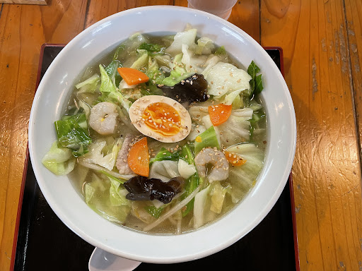 Read moreランチでお邪魔しました。 目当ての食堂が祝日で休みだったこともあり、急遽伺いました。 駐車場は7〜8台は置けると思いますが、普通に停めることが出来ました。 のれんをくぐり戸を開けると、テーブル席、小上がり席は満席で、カウンター席が半分くらい空いていましたので、カウンター席に座ります。 入り口には野菜タンメン推しな看板が出ていましたので、おそらくこれがオススメだと直感しましたので、メニュー表を見るやいなや野菜タンメンを注文しました。 ワタシが野菜タンメンの出来上がりを待っている間に、カウンター席も満席に。人気店ですね〜。 10分も掛からずに出来上がり。