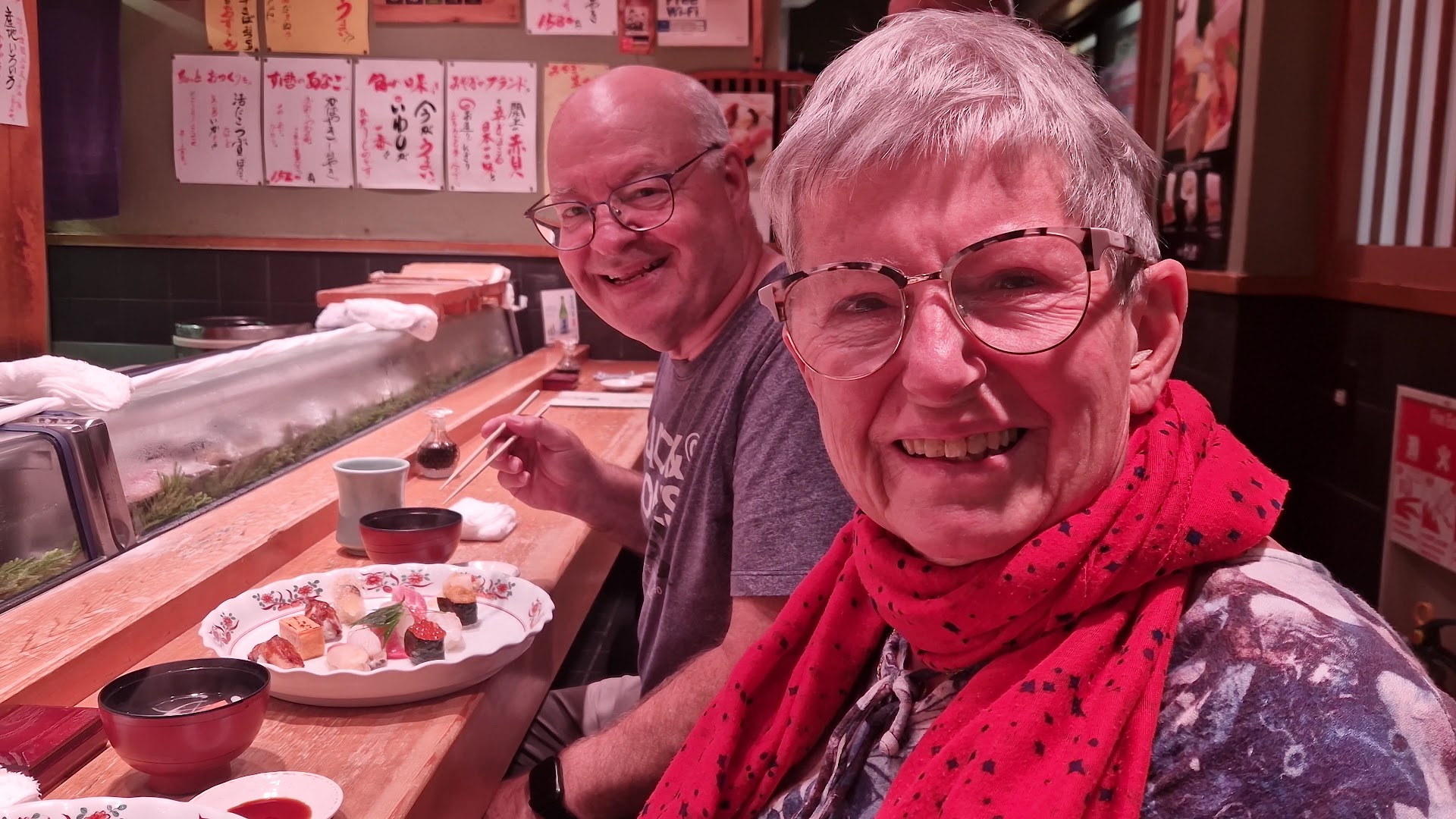 The chefs helped us eat the sushi in the correct way using our fingers and only dipping the fish in the soy sauce, and not the rice. The chefs also made good conversation in a combination of Japanese and English, letting us practice our Japanese a bit ☺️