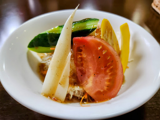 サラダは瑞々しい生野菜をおいしいドレッシングでたのしめます。 パスタはとても熱いので一口目に気をつけて。食材への火の通りに集中力を感じる仕上がりで、とてもおいしいです。