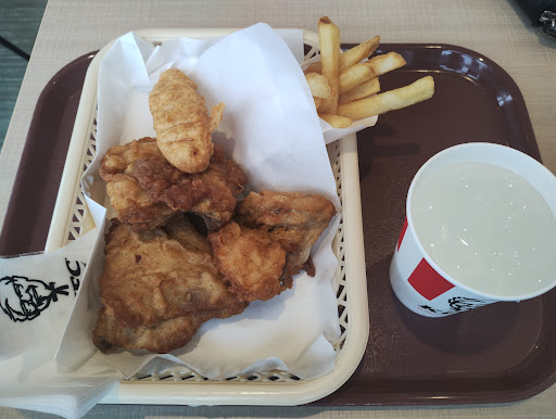 All you can eat temporary promotion. I had 6 original chicken pieces, 1 small potato, 1 bisket, 1 ginger ale and 1 oolong tea! And that was enough for me... The record done within the 45 minutes here is 22 chicken pieces, a...