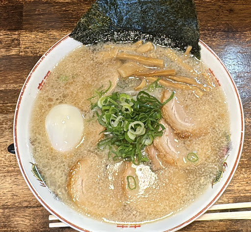 Read more出張利用。 席数31。カウンター×7。テーブル4×3。 テーブル6×2。 ホテルの隣にありコンビニの居抜きかな? 駐車場は広く近隣に飲食店は少ない。 夜8時なのに8割埋まっていて晩御飯・あがり酒・〆等利便性が良さそう。 驚いた事にここは大手チェーン系の真似をしてるのかな?メニューどころか丼まで一緒www 豚骨ラーメンって一風堂そのまま! ネギラーメンはラーショだしコッテリ中華そばは来来亭・二郎系のパチ物まであり ある意味器用だな・・・www 先ずは生ビールにネギ塩唐揚げを注文。 550円・450円。 う〜ん驚いた!ネギの味付けはラーショと同じ。 唐揚げは40〜50グラムの少し大きめ。 長野だけあり山椒多めで酒がすすむ。 ラーメンはコッテリ中華そば・味玉トッピング。 790円。 来来亭のパチ物だが本家より背脂が多めでカエシの塩分がしっかりしてる分スープは恐らく業務用ではないのかな?! このご時世光熱費高騰の中この価格帯のラーメン屋で豚骨・鶏の2種類スープは無理でしょうwww 麺も加水率低めのストレートだし。 恐らく一風堂風豚骨ラーメンと同じ。 味玉は黄身のとろみ加減良し! ここまでコピーできるのは本当に器用だしホテルに宿泊の人間には飽きない...