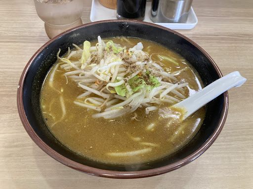 カレーラーメンは室蘭に行ってからハマり、好み的には富山新湊のスパローのカレーラーメンが好きで、このお店のカレーラーメンも南蛮的餡かけ風でパンチの効いた辛さが似た感じがありますがモヤシが異常に多く、モヤシさえ無ければベストなカレーラーメンだと思います。