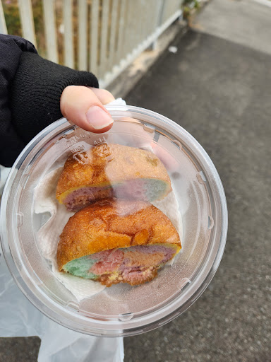 Rainbow Donut looks great, and also tastes great. The sweetness is moderate and the donut is chewy.