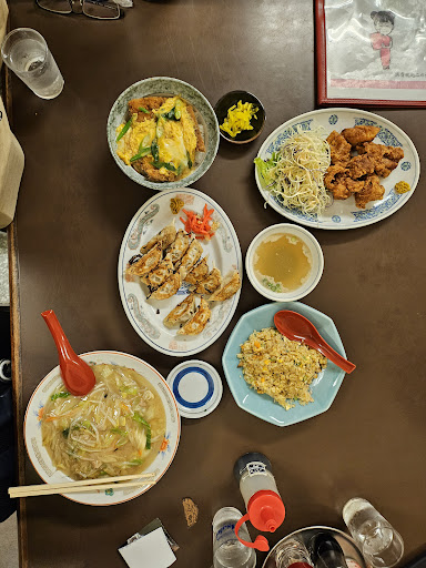 Read more白浜温泉柳橋足湯から柳橋通りを進んだところにある町中華のお店、どちらかと言えば地元の方が良く利用しているお店のようです。 店内はいかにもな赤いカウンター席、メニューも中華だけでなく丼ものもあり日本の中華屋さん、と言うメニューで観光とはいえ息抜きしたメニューを食べたい場合にはいい場所だと思います。 この日はとりあえず一杯と思い豚肉天ぷらとハイボールをまずは注文。豚肉天はややスパイシーでカラッとした衣でおつまみにちょうどいい!一杯軽く味わい、二杯目を注文しながらご飯の方へとスライドしていき、他人丼と卵スープを注文。 他人丼は豚ではなく牛の卵とじ丼で、大きめの玉ねぎの触感と、甘めの味付けが日本のどんぶり!って感じ美味しいです。卵スープも結構な具だくさんで、こちらは味付けは中華ですがご飯ものによく合いますね。美味しかったです。