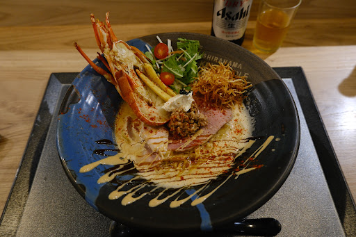 Read moreWe went there with 3 of us my husband, my almost 2 years old baby and myself. It was indeed a unique ramen experience. Unlike traditional Japanese ramen, it comes a modern twist. The taste was nice. My husband had the fish ramen with extra spicy..He liked the heat and the extra chili/mala oil was a nice touch. Recommend for thoes who like it hot. I had the lobster noodle, it was very flavorful. We order a small side "French noodle" for our son. It turn out to be a pesto with parmesan cheese noodle, which to me is not so French (to me). The taste as ok, my baby likes it, but was just a little disappointed. Overall would recommend it for thoes who want to try a different...