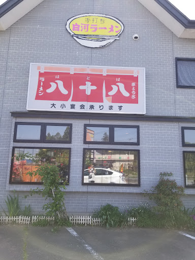 白河市での午前中の仕事のあと、11時過ぎに訪問。 暴風吹く中で駐車場に着いたら、ちょうどオープンしたところお邪魔しました。 女将さん一人で切り盛りしているお店です。 お店は小上がりとテーブル席、二階はパーティールームだそうです。 メニューを見て、八十八(はとば)ラーメンが気になり注文。 八十八ラーメンは醤油ラーメンにお店で独自の「辛子味噌」を好みで入れて食べるスタイル。 麺は手打ち麺でスープは魚介系が混じっている醤油ベース。 トッピングはチャーシューとなるとと、わかめ、辛子味噌にはひき肉が混じっていました。 女将さんいわく、新陳代謝が良い方は汗だらけになるとのことでしたが、自分は出されて辛子味噌をすべて入れました。 ピリッとしますが、美味しかったです。 辛子味噌はおか...