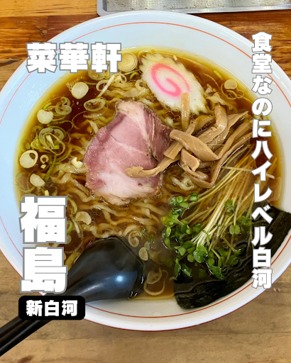 菜華軒@ 福島県白河市新白河3-8 どうも、さぴおです ✍️ラーメン 780円 ______________ 🍥ポイント ✅シャープな濃口醤油ダレと鶏油の調和!畝り強い熟成手打ち麺のネチッとした食感がたまらない! ✅吊るしチャーシューの仕上がりが抜群 ✅タンメンから食堂メニューまで!1989年創業の地元民支持絶大の老舗ラーメン食堂! ✅味噌ラーメンの『味の一番』の流れを汲む?  ̄ ̄ ̄ ̄ ̄ ̄ ̄ ̄ ̄ ̄ ̄ ̄ ̄ ̄ [点数] 86点...
