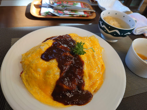 色々楽しめるプレートにするか迷った挙句、娘はバーグスパゲティ、私はオムライスをオーダー。 最初に出てきたサラダはありきたり…と思いきや、玉ねぎのドレッシングが絶品で一気に期待が高まりました。 オムライスはトマト味のご飯(ベーコン、玉ねぎ、エビなど具だくさんでした)の上に半熟の卵が乗り、デミグラスソースが。 ソースが少ないかなと思ったけれど、ライスに良い味がついてるので十分楽しめました。 娘のバーグスパゲティは、デミグラスソース?で炒めたスパゲティの上にハンバーグが。 見た目はイメージ通りのシンプルさですが食べて美味しさにびっくり。 ハンバーグがふっくらジューシーでした。 どちらもデミグラスソースを使っているのかなと思いましたが、オムライスはトマトライスが甘目なので優しい味わい、バーグスパゲティはソースの酸味とスパイスの味が出て美味しかったです。 見た目にはごくシンプルです、メニューのイメージと変わらないのに食べると感動が大きくて、幸せ...