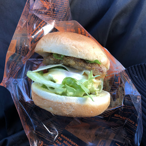 飛騨牛カツレツのバーガー(銀のバーガー)をいただきました。 牛カツはさすが飛騨牛という感じで、とても美味しかったです。揚げたてのようで衣も薄付きでサクサクでした。 立地や外観を考えると950円は少々値が張るかと思いましたが、ボリュームとお味で納得しました。